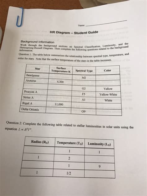 Hr Diagram Student Guide Answers Review